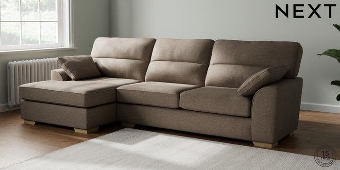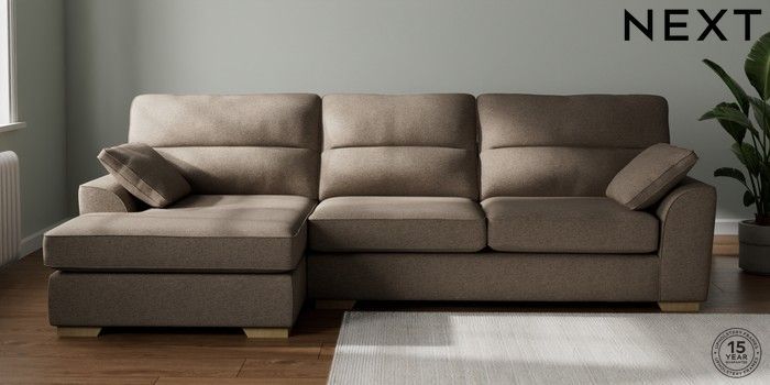 7.2.10 Stamford Highback Large Sofa Chaise - Left Hand Chunky Weave Dark Natural Large Square Angle - Light | Made Click here to use our website with more accessibility support, for example screen readers