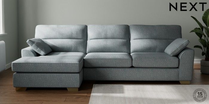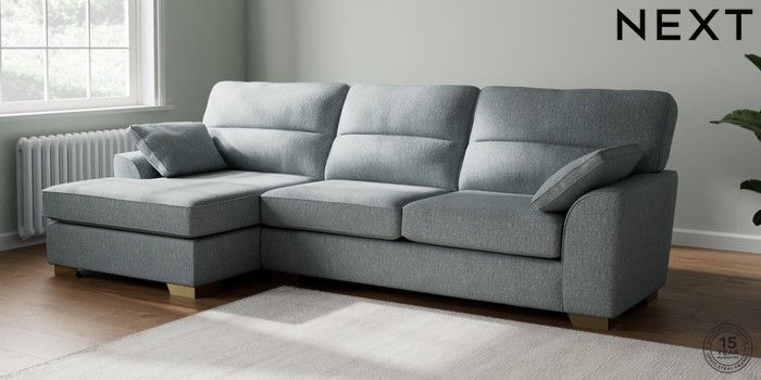 7.2.10 Stamford Highback Large Sofa Chaise - Left Hand Chunky Weave Mid Blue Large Square Angle - Brushed Brass | Made Click here to use our website with more accessibility support, for example screen readers