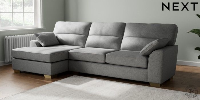 7.2.10 Stamford Highback Large Sofa Chaise - Left Hand Chunky Weave Mid Grey Large Square Angle - Brushed Brass | Made Click here to use our website with more accessibility support, for example screen readers