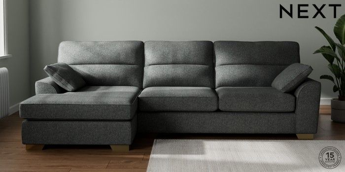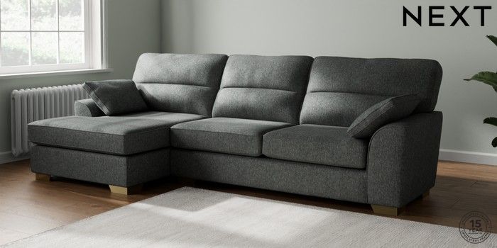 7.2.10 Stamford Highback Large Sofa Chaise - Left Hand Cotswold Chenille Dark Grey Large Square Angle - Brushed Brass | Made Click here to use our website with more accessibility support, for example screen readers