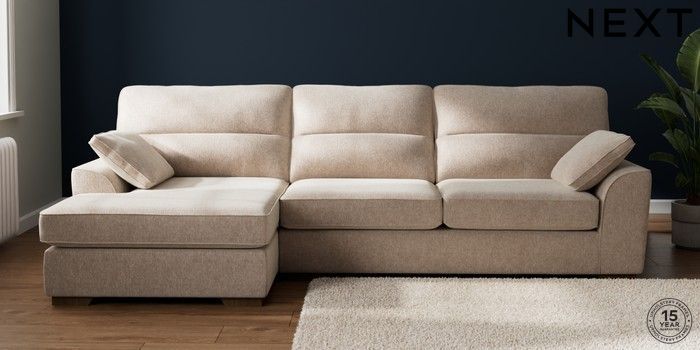 7.2.10 Stamford Highback Large Sofa Chaise - Left Hand Cotswold Chenille Light Natural Large Square Angle - Mid | Made Click here to use our website with more accessibility support, for example screen readers