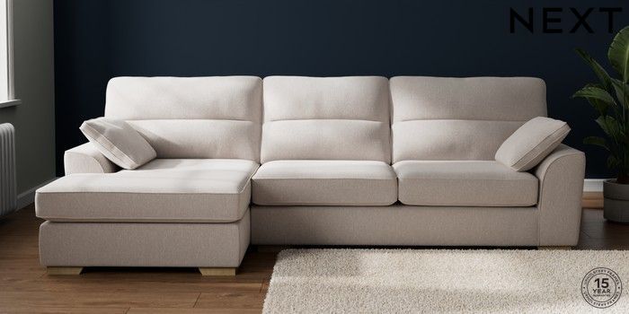 7.2.10 Stamford Highback Large Sofa Chaise - Left Hand Cotswold Chenille Oyster Large Square Angle - Light | Made Click here to use our website with more accessibility support, for example screen readers