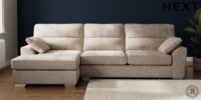 7.2.10 Stamford Highback Large Sofa Chaise - Left Hand Distressed Velour Mid Natural Large Square Angle - Chrome Metal | Made Click here to use our website with more accessibility support, for example screen readers
