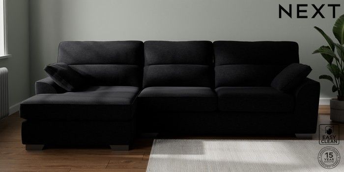 7.2.10 Stamford Highback Large Sofa Chaise - Left Hand Fine Chenille Easy Clean Black Large Square Angle - Gunmetal | Made Click here to use our website with more accessibility support, for example screen readers