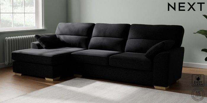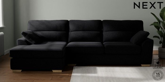7.2.10 Stamford Highback Large Sofa Chaise - Left Hand Fine Chenille Easy Clean Black Large Square Angle - Light | Made Click here to use our website with more accessibility support, for example screen readers