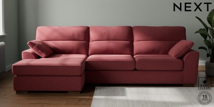 7.2.10 Stamford Highback Large Sofa Chaise - Left Hand Fine Chenille Easy Clean Mid Pink Large Square Angle - Mid | Made Click here to use our website with more accessibility support, for example screen readers