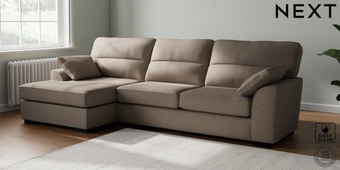 7.2.10 Stamford Highback Large Sofa Chaise - Left Hand Fine Chenille Easy Clean Mid Taupe Brown Large Square Angle - Dark | Made Click here to use our website with more accessibility support, for example screen readers