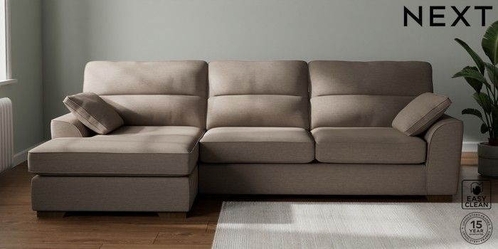 7.2.10 Stamford Highback Large Sofa Chaise - Left Hand Fine Chenille Easy Clean Mid Taupe Brown Large Square Angle - Mid | Made Click here to use our website with more accessibility support, for example screen readers