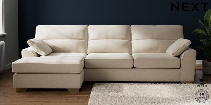 7.2.10 Stamford Highback Large Sofa Chaise - Left Hand Fine Chenille Easy Clean Oyster Large Square Angle - Brushed Brass | Made Click here to use our website with more accessibility support, for example screen readers