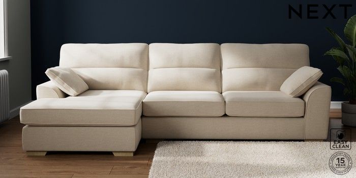 7.2.10 Stamford Highback Large Sofa Chaise - Left Hand Fine Chenille Easy Clean Oyster Large Square Angle - Light | Made Click here to use our website with more accessibility support, for example screen readers
