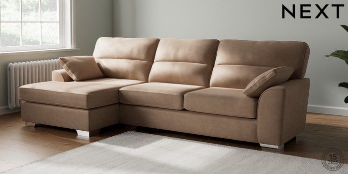 7.2.10 Stamford Highback Large Sofa Chaise - Left Hand Luxe Chenille Mid Natural Large Square Angle - Chrome Metal | Made Click here to use our website with more accessibility support, for example screen readers