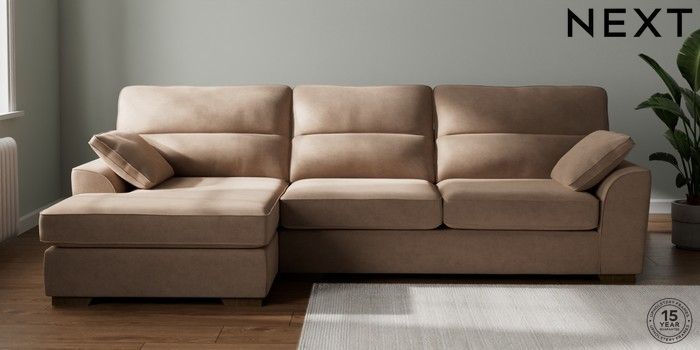 7.2.10 Stamford Highback Large Sofa Chaise - Left Hand Luxe Chenille Mid Natural Large Square Angle - Mid | Made Click here to use our website with more accessibility support, for example screen readers