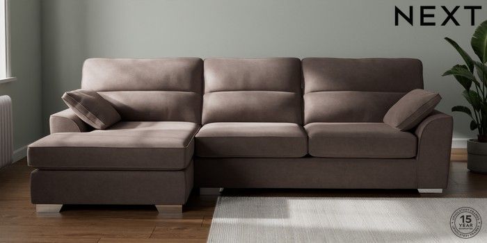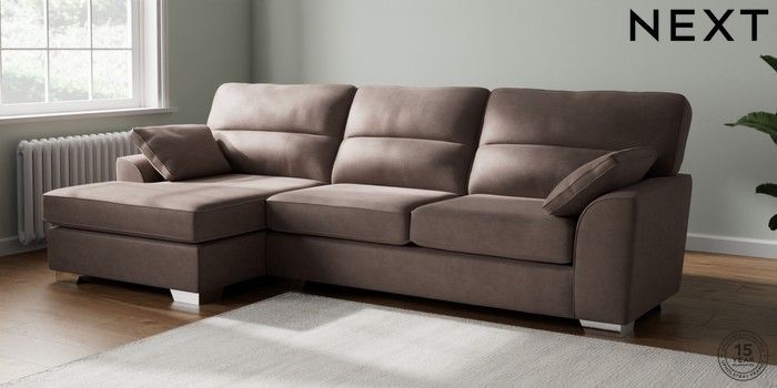 7.2.10 Stamford Highback Large Sofa Chaise - Left Hand Luxe Chenille Mink Brown Large Square Angle - Chrome Metal | Made Click here to use our website with more accessibility support, for example screen readers