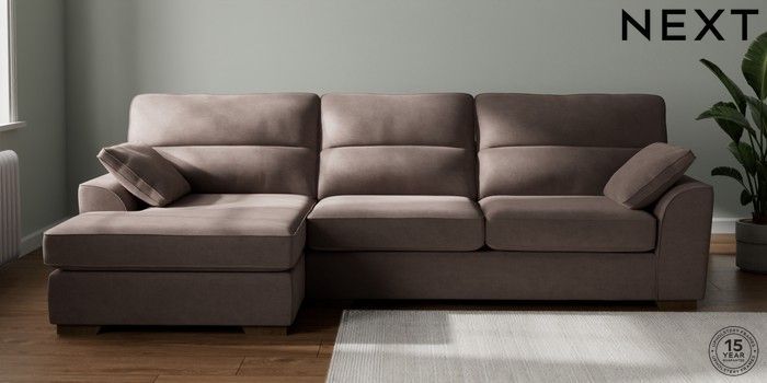 7.2.10 Stamford Highback Large Sofa Chaise - Left Hand Luxe Chenille Mink Brown Large Square Angle - Mid | Made Click here to use our website with more accessibility support, for example screen readers