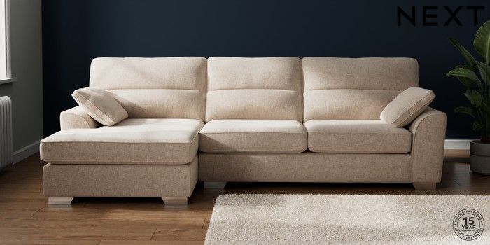 7.2.10 Stamford Highback Large Sofa Chaise - Left Hand Multi Weave Mid Natural Large Square Angle - Chrome Metal | Made Click here to use our website with more accessibility support, for example screen readers