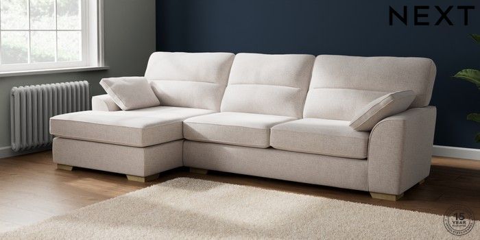 7.2.10 Stamford Highback Large Sofa Chaise - Left Hand Multi Weave Oyster Large Square Angle - Light | Made Click here to use our website with more accessibility support, for example screen readers