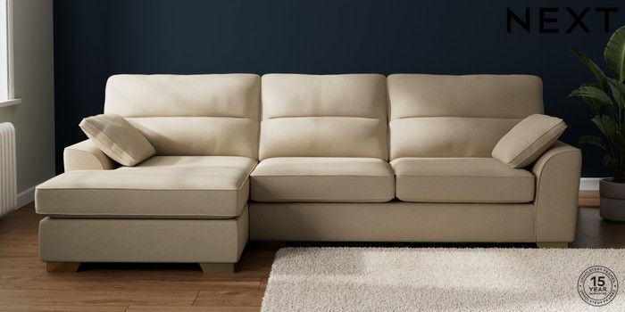 7.2.10 Stamford Highback Large Sofa Chaise - Left Hand Natural Mix Light Natural Large Square Angle - Brushed Brass | Made Click here to use our website with more accessibility support, for example screen readers