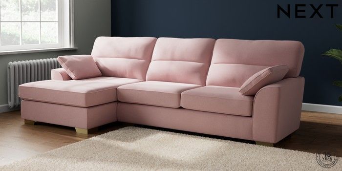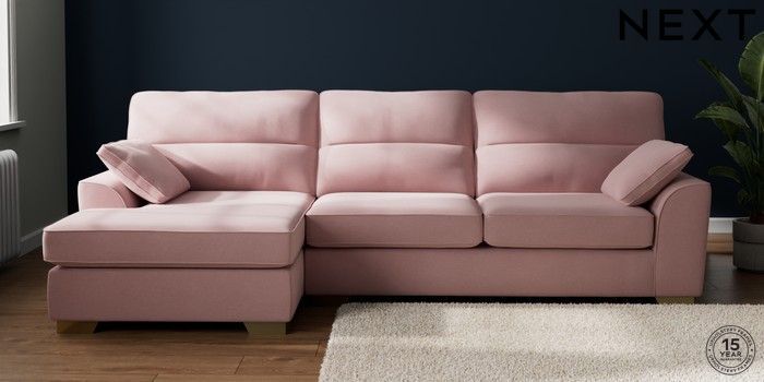 7.2.10 Stamford Highback Large Sofa Chaise - Left Hand Natural Mix Light Rose Pink Large Square Angle - Brushed Brass | Made Click here to use our website with more accessibility support, for example screen readers