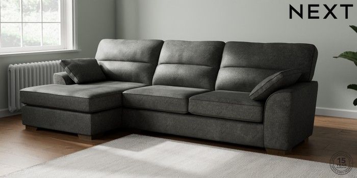 7.2.10 Stamford Highback Large Sofa Chaise - Left Hand Plush Chenille Dark Grey Large Square Angle - Mid | Made Click here to use our website with more accessibility support, for example screen readers