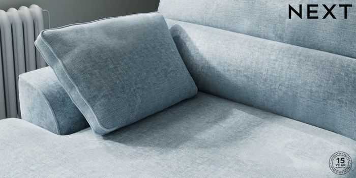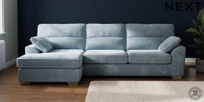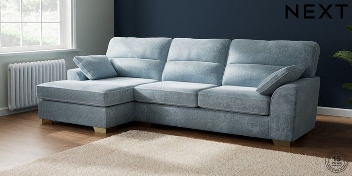 7.2.10 Stamford Highback Large Sofa Chaise - Left Hand Plush Chenille Light Blue Large Square Angle - Brushed Brass | Made Click here to use our website with more accessibility support, for example screen readers