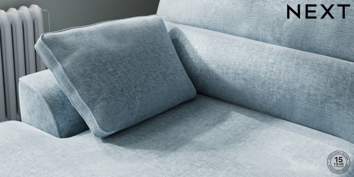 7.2.10 Stamford Highback Large Sofa Chaise - Left Hand Plush Chenille Light Blue Large Square Angle - Dark | Made Click here to use our website with more accessibility support, for example screen readers