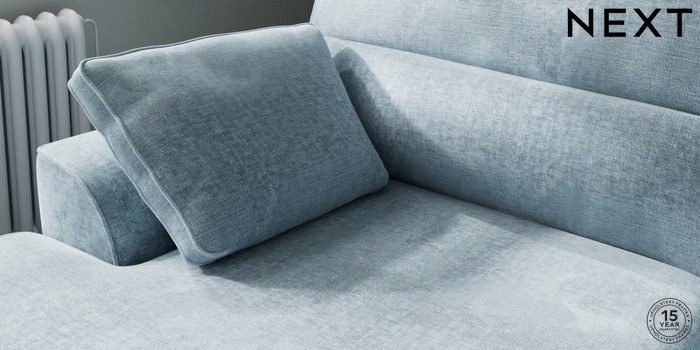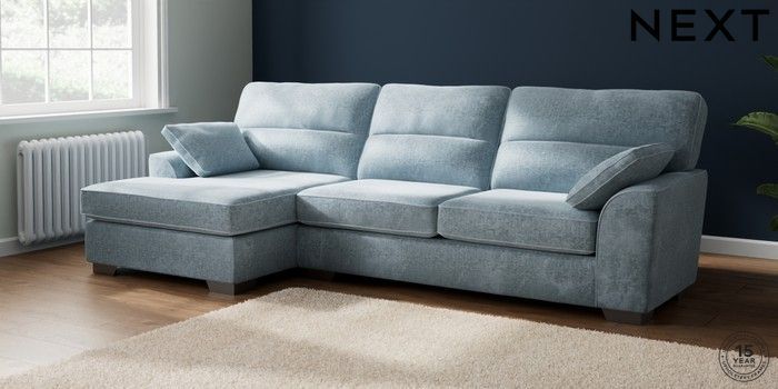 7.2.10 Stamford Highback Large Sofa Chaise - Left Hand Plush Chenille Light Blue Large Square Angle - Gunmetal | Made Click here to use our website with more accessibility support, for example screen readers