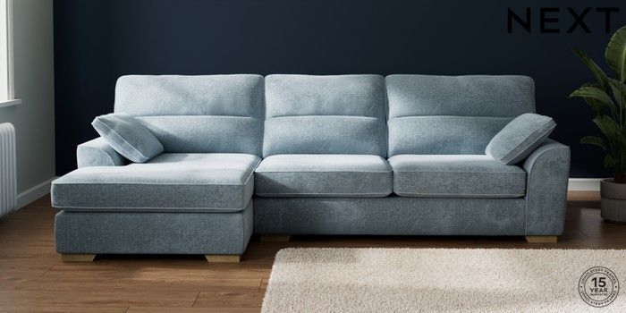 7.2.10 Stamford Highback Large Sofa Chaise - Left Hand Plush Chenille Light Blue Large Square Angle - Light | Made Click here to use our website with more accessibility support, for example screen readers