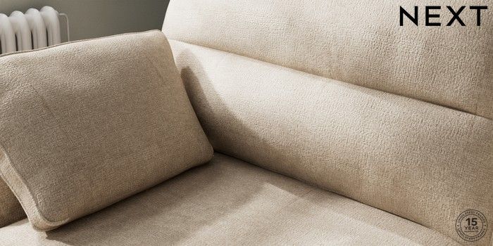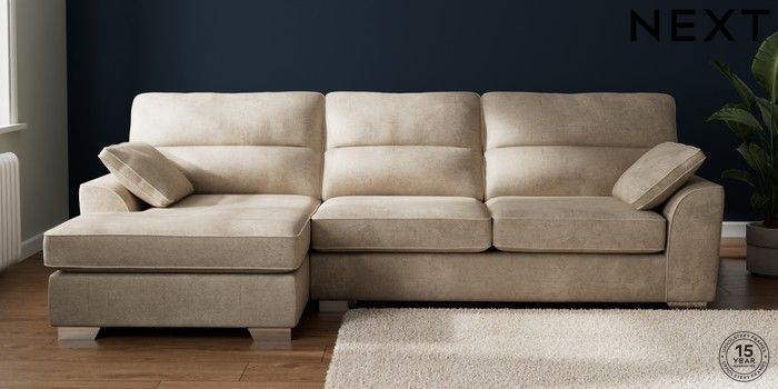 7.2.10 Stamford Highback Large Sofa Chaise - Left Hand Plush Chenille Light Natural Large Square Angle - Chrome Metal | Made Click here to use our website with more accessibility support, for example screen readers