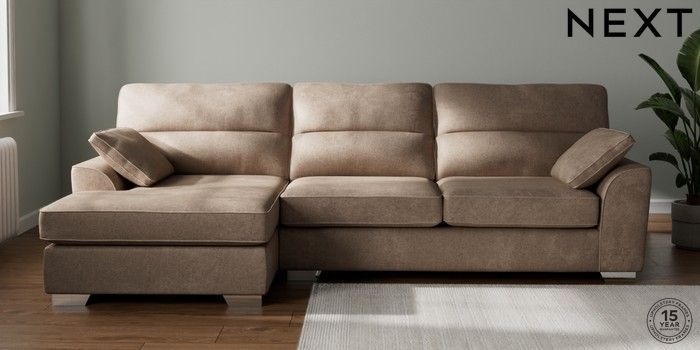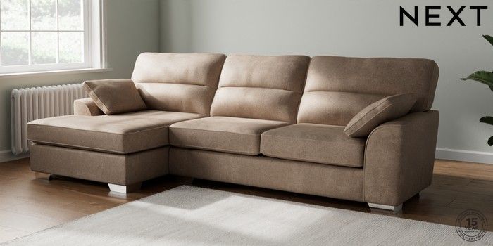 7.2.10 Stamford Highback Large Sofa Chaise - Left Hand Plush Chenille Mid Natural Large Square Angle - Chrome Metal | Made Click here to use our website with more accessibility support, for example screen readers