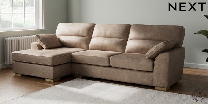7.2.10 Stamford Highback Large Sofa Chaise - Left Hand Plush Chenille Mid Natural Large Square Angle - Light | Made Click here to use our website with more accessibility support, for example screen readers