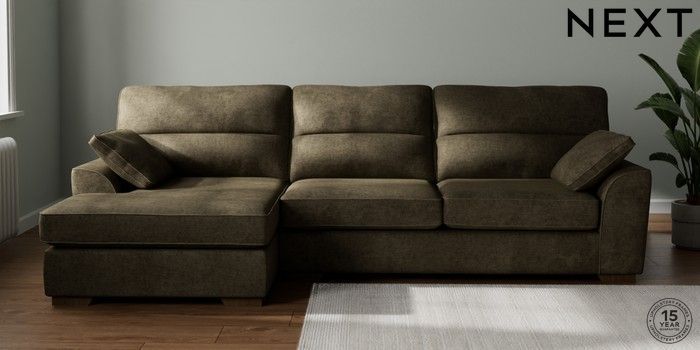 7.2.10 Stamford Highback Large Sofa Chaise - Left Hand Plush Chenille Moss Green Large Square Angle - Mid | Made Click here to use our website with more accessibility support, for example screen readers