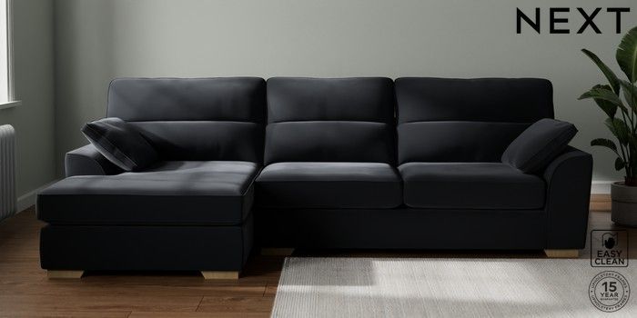 7.2.10 Stamford Highback Large Sofa Chaise - Left Hand Plush Velvet Easy Clean Charcoal Grey Large Square Angle - Light | Made Click here to use our website with more accessibility support, for example screen readers
