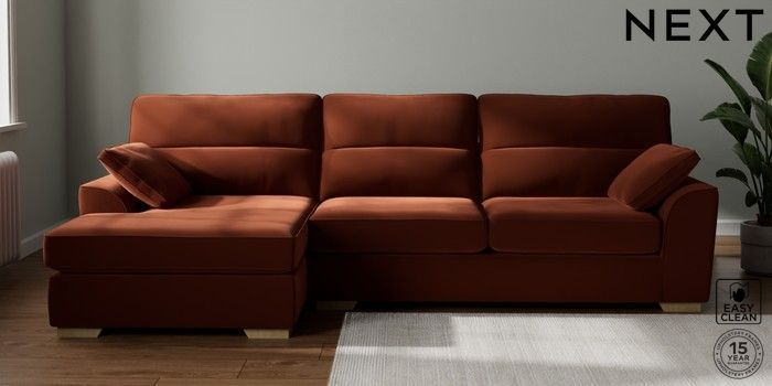 7.2.10 Stamford Highback Large Sofa Chaise - Left Hand Plush Velvet Easy Clean Ginger Orange Large Square Angle - Light | Made Click here to use our website with more accessibility support, for example screen readers