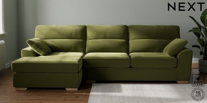7.2.10 Stamford Highback Large Sofa Chaise - Left Hand Plush Velvet Easy Clean Mid Olive Green Large Square Angle - Light | Made Click here to use our website with more accessibility support, for example screen readers