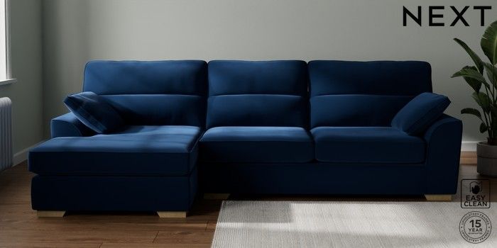 7.2.10 Stamford Highback Large Sofa Chaise - Left Hand Plush Velvet Easy Clean Navy Blue Large Square Angle - Light | Made Click here to use our website with more accessibility support, for example screen readers