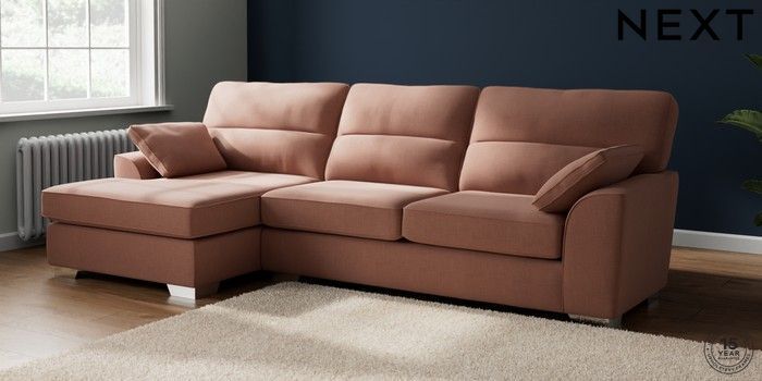 7.2.10 Stamford Highback Large Sofa Chaise - Left Hand Relaxed Linen Look Light Rust Brown Large Square Angle - Chrome Metal | Made Click here to use our website with more accessibility support, for example screen readers