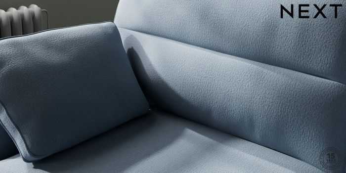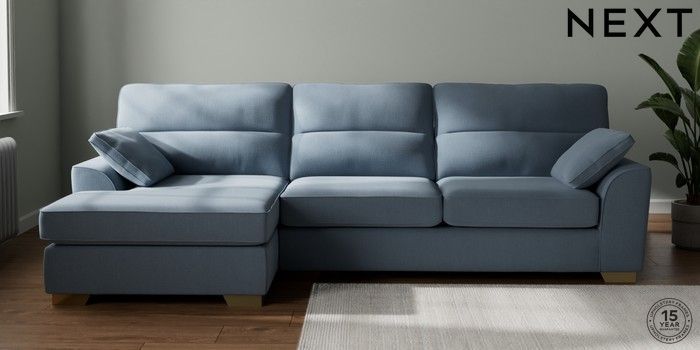 7.2.10 Stamford Highback Large Sofa Chaise - Left Hand Relaxed Linen Look Mid Blue Large Square Angle - Brushed Brass | Made Click here to use our website with more accessibility support, for example screen readers