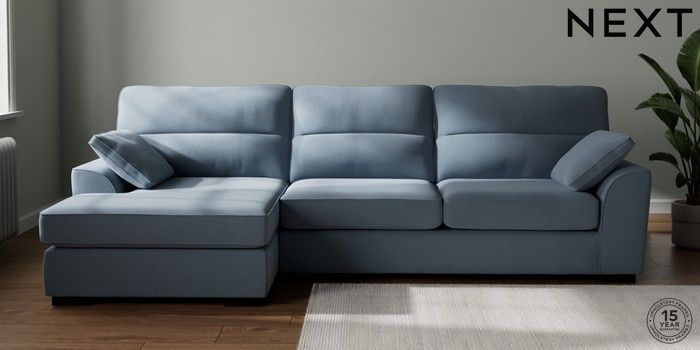 7.2.10 Stamford Highback Large Sofa Chaise - Left Hand Relaxed Linen Look Mid Blue Large Square Angle - Dark | Made Click here to use our website with more accessibility support, for example screen readers