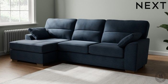 7.2.10 Stamford Highback Large Sofa Chaise - Left Hand Ripple Chenille Dark Blue Large Square Angle - Mid | Made Click here to use our website with more accessibility support, for example screen readers