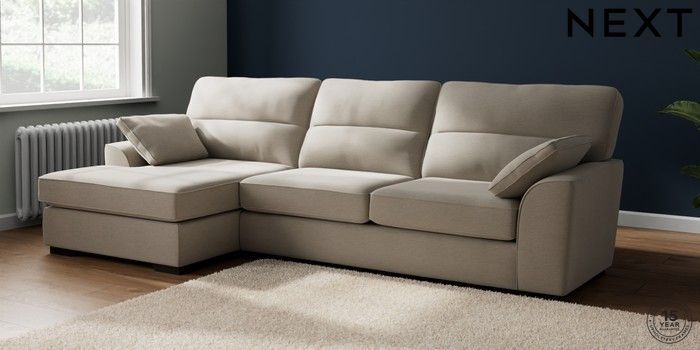 7.2.10 Stamford Highback Large Sofa Chaise - Left Hand Ripple Chenille Light Natural Large Square Angle - Dark | Made Click here to use our website with more accessibility support, for example screen readers