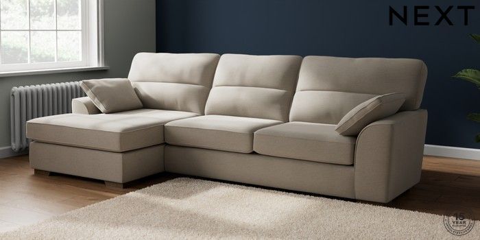 7.2.10 Stamford Highback Large Sofa Chaise - Left Hand Ripple Chenille Light Natural Large Square Angle - Mid | Made Click here to use our website with more accessibility support, for example screen readers