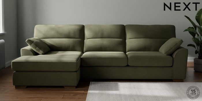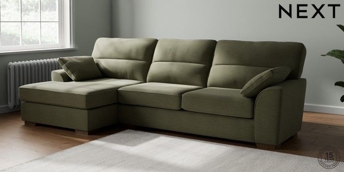 7.2.10 Stamford Highback Large Sofa Chaise - Left Hand Ripple Chenille Mid Moss Green Large Square Angle - Mid | Made Click here to use our website with more accessibility support, for example screen readers