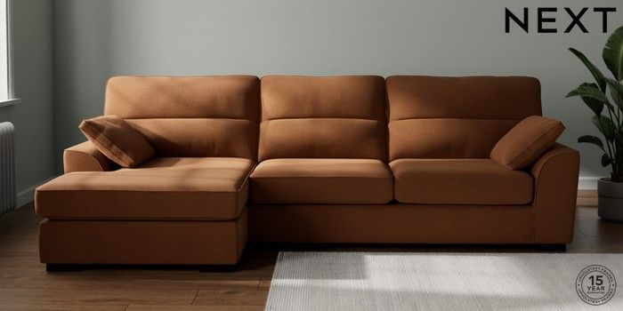 7.2.10 Stamford Highback Large Sofa Chaise - Left Hand Ripple Chenille Mid Rust Brown Large Square Angle - Dark | Made Click here to use our website with more accessibility support, for example screen readers