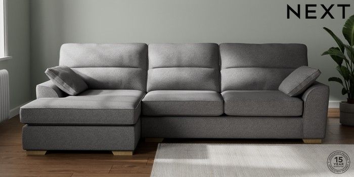 7.2.10 Stamford Highback Large Sofa Chaise - Left Hand Studio Chenille Mid Grey Large Square Angle - Light | Made Click here to use our website with more accessibility support, for example screen readers