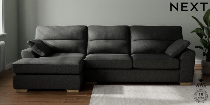 7.2.10 Stamford Highback Large Sofa Chaise - Left Hand Tweedy Blend Easy Clean Charcoal Grey Large Square Angle - Light | Made Click here to use our website with more accessibility support, for example screen readers
