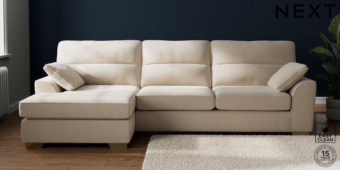 7.2.10 Stamford Highback Large Sofa Chaise - Left Hand Tweedy Blend Easy Clean Oyster Large Square Angle - Brushed Brass | Made Click here to use our website with more accessibility support, for example screen readers