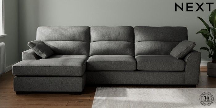 7.2.10 Stamford Highback Large Sofa Chaise - Left Hand Tweedy Chenille Dark Grey Large Square Angle - Dark | Made Click here to use our website with more accessibility support, for example screen readers