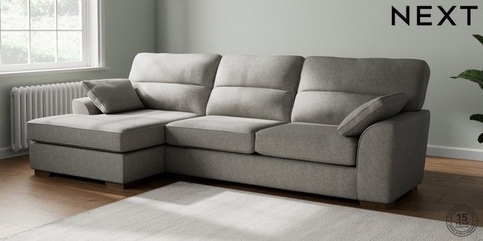 7.2.10 Stamford Highback Large Sofa Chaise - Left Hand Tweedy Chenille Mid Grey Large Square Angle - Mid | Made Click here to use our website with more accessibility support, for example screen readers