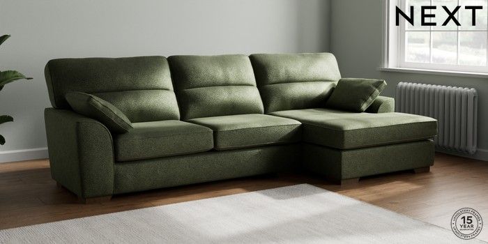 7.2.10 Stamford Highback Large Sofa Chaise - Right Hand Boucle Chenille Dark Moss Green Large Square Angle - Mid | Made Click here to use our website with more accessibility support, for example screen readers