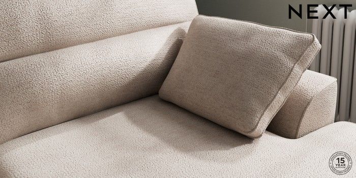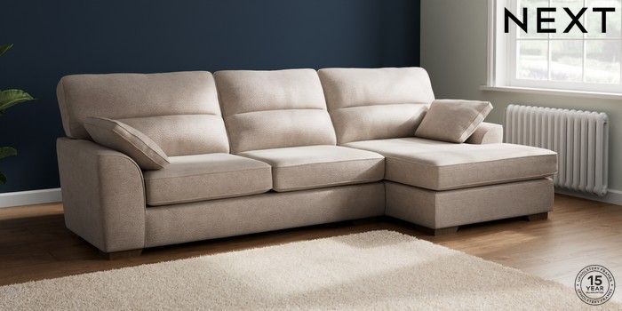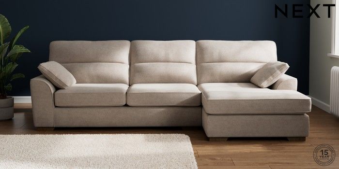 7.2.10 Stamford Highback Large Sofa Chaise - Right Hand Boucle Chenille Light Natural Large Square Angle - Mid | Made Click here to use our website with more accessibility support, for example screen readers